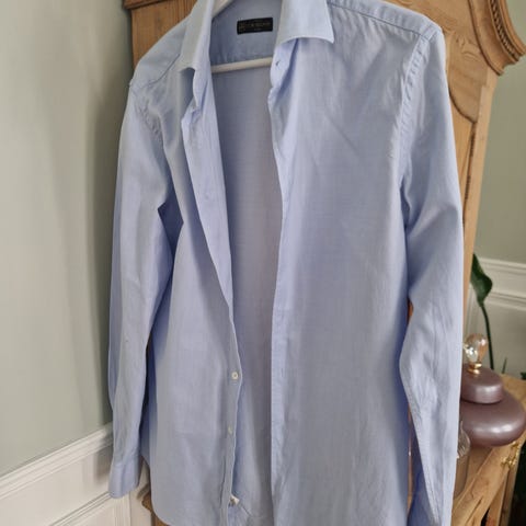 Pent brukt Corneliani skjorte i L farge lyseblå selges. Skjorten fremstår meget pent brukt