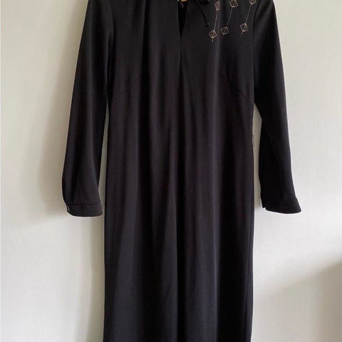 Veldig morsom og søt vintage kjole! A-linjeforma og lakserosa. Lett glinsande stoff med innebygd underskjørt. Danskprodusert 🎀🦩Det står 38 på lappen, men eg ville sagt 34/36.