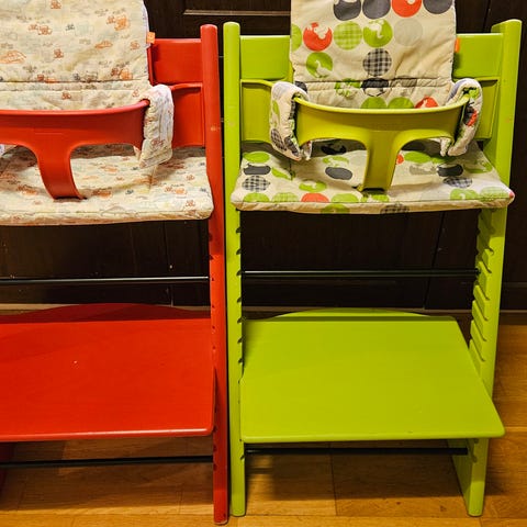 Stokke Tripp trapp barnestol tilbehør sett bestående av brett, sittedel og polstrede puter med matchende mønster. Passer til Stokke barnestoler for økt komfort og funksjonalitet. Pent brukt. Puten har noen merker innerst på sittedelen, men ikke så synlig i bruk.