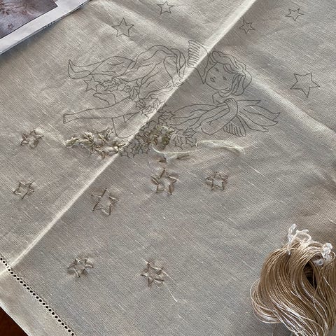 Broderisett Duk 32 x 32 cm Hvit med julemotiv