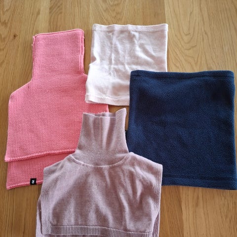 Reima halser i fleece og ull. Fleece halsen er onesize og ullhalsen er str 2 (52-58). Selges samlet.