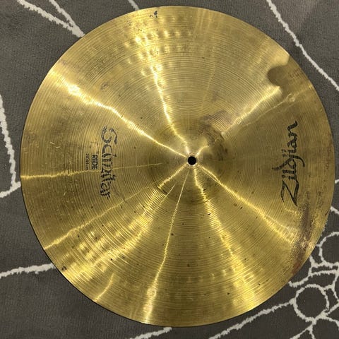 1- Hi hat Avedis 14“ circa 1948-50. Utrolig fin lyd, lett og enestående jazz klassik lyd - 4000kr
