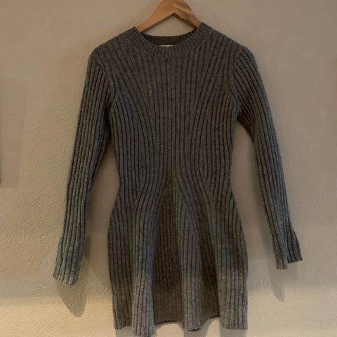 Grå kjole i strikket materiale dame størrelse S