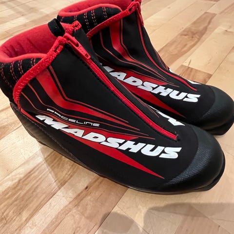 Madshus langre skisko, str 38 med skolisser snøring og glidelås. Passer til NNN- binding