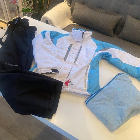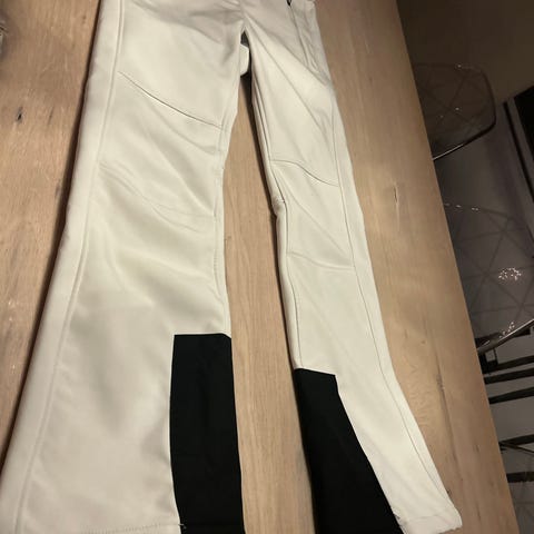 Vikafjell skibukse i str. XS. Brukt av 11-åring til alpint. Den har et par små rifter bak på det ene benet (fra stålkantene på skiene). Bilde av riftene er vedlagt.