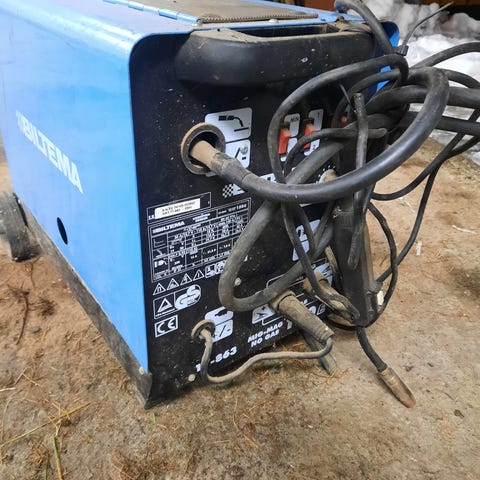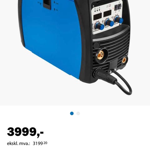 Nesten ikke brukt , Biltema MIG 90 mig-sveisemaskin med justerbar strømstyrke (10 A til 45 A) og kontrollpanel for sveiseinnstillinger. Leveres med sveisehåndtak og sveisemaske. Egnet for sveising i ulike metallarbeider.