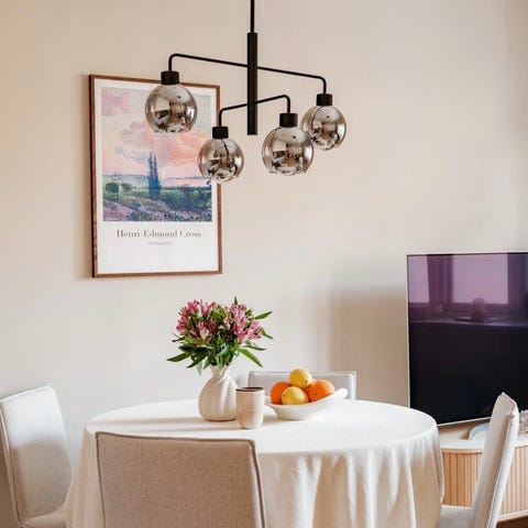 Kulelampe med dempet glass, perfekt for å skape hyggelig atmosfære rundt spise/stuebordet.