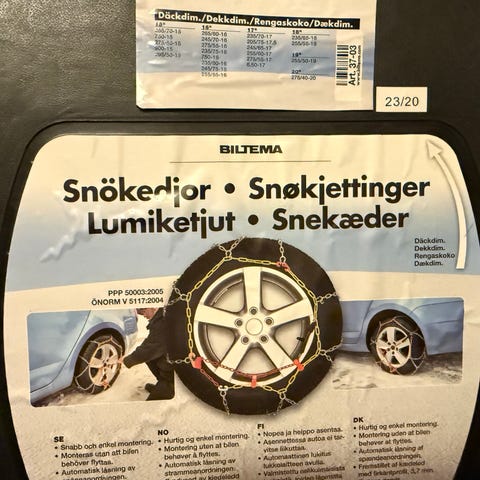 Vinterkjetting fra Biltema. Se dekkdimensjonene på bildet. Hentes i Fredrikstad 😊