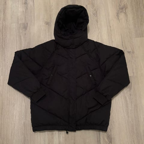 Sort vinterjakke, kort boblejakke fra H&M divided strS. Stikklommer. Stramming nederst.