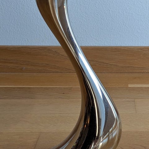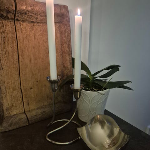 Georg Jensen lysestake med fire armer i metall. Designet for å holde fire lys, egnet for bord- eller hylleplassering.