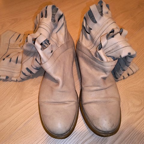Godt brukt, men hele. Kan sikkert få dem hvitere med grundig vask