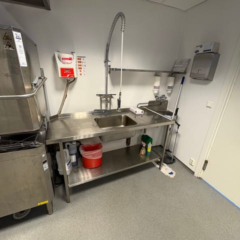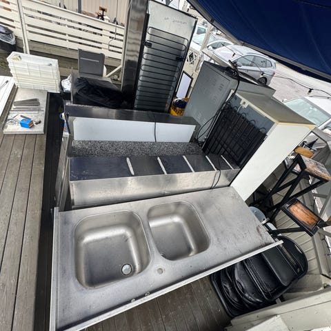 Selger pent brukt rustfritt stål kjølebenk /grillkjøkken til proffmarkedet/ storkjøkken/kafé drift eller de som måtte ønske et skikkelig industrielt og tøft preg på sitt kjøkken.Ble dessverre aldri brukt her, selges derfor videre til noen som kan ta dette flotte møbelet i bruk videre. Dobbelt termostat styrt kjøleskap, oppbevaringsskap, to stykk avfallsdunker, hvorav den minste er brukt til kaffegrut/matavfall-derav merker på døra, og kan sikkert byttes. God arbeidsflate på kjøkkenbenken på 250x63 cm med oppkant! 3 stk hull i arbeidsbenken, så alt er klart for strøm/ tappetårn/ ekstrautstyr kjøkken direkte på benk via skap under. Høystbydende over 10.000 kr. Tungt og massivt kjøkken av god kvalitet ( DSL) vi er behjelpelig med å bære ut fra vårt hjem. For mer informasjon er det bare å ringe 97634169.