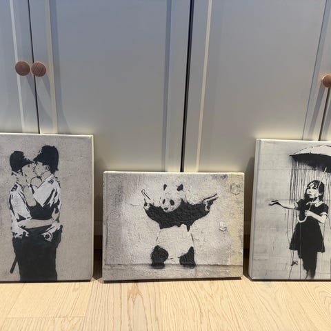 Bilde fra Banksy - "Follow your dreams" med svart floating frame 71x71 cm kjøpt fra galleri i London selges til høystbydende over NOK 5000,-