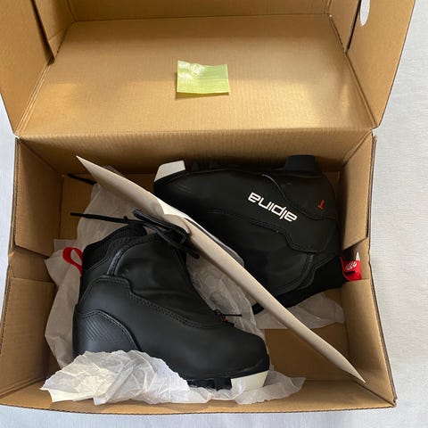 Tilnærmet ubrukte skisko str.26 (små i str.) selges