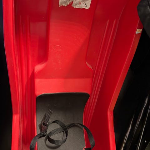 Baby Rider Monster akebrett i rosa farge med grå setepute selges. Utstyrt med sikkerhetssele/belte og snor for å trekke akebrettet. Laget av plastmateriale. Egnet for de minste barna. Lite og pent brukt og lite slitasje. Brukt til barnebarn.