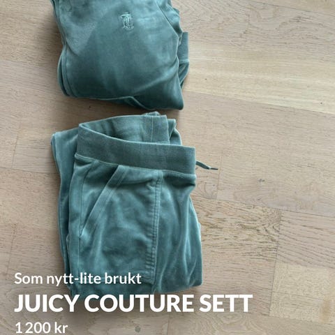 Juicy Couture sett til dame, størrelse M og XS og er brukt litt. Det er noen flekker som kan vaskes vekk med flekkfjerning. Den har ett lite hull på buksen med lommen og snørene på buksen mangler metall beskyttelsen. Dette er et veldig komfortabel sett som ble kjøpt nytt for 3000kr. Denne selges fordi den ikke blir brukt lenger. Ta gjerne kontakt om du vil ha den.