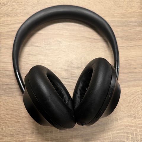 Over-ear design med polstrede øreputer for komfort. Utstyrt med kontrollknapper for enkel bruk. Trådløs tilkobling med innebygd mikro-USB ladeport.