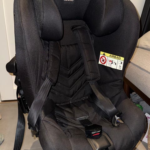 Setet er brukt av to barn. Ble plassert i garasjen i den høst, og fikk jordslag på selene. Trekket er nyvasket. Har pute man kan ha foran. Glidelåsen i trekket bak er ødelagt, me har ingenting å si for funksjon. Må hentes