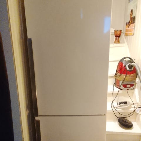 Kjøleskap gis bort. Den er ødelagt, kanskje den kan ordnes eller bruke delene. Den er vasket. Må hentes snarest hvis ikke blir den hevet.