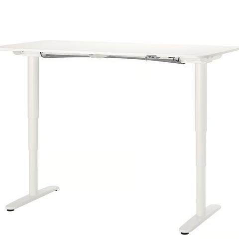 Elektrisk hevsenk skrivebord med hvite ben og lys bordplate