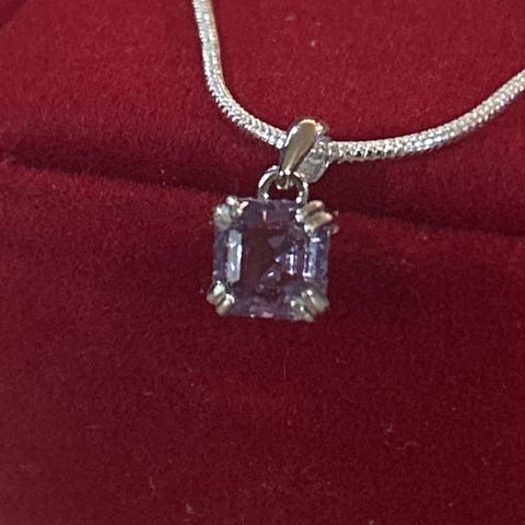 Sølvring med Rainbow Purple moissanitt , Russian cut, på 1 karat. Diameter på moissanitt er 6,5 mm
