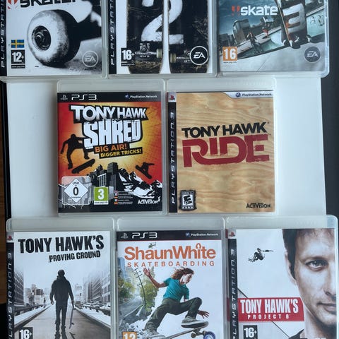 PlayStation spill med titler som Tony Hawk's Skateboarding, Medal of Honor Underground, og Bugs Bunny Puzzle Time Busters lost in time driver mangler back inlay Spillene er for PlayStation-konsoll og inkluderer forskjellige sjangere som skateboarding, action og puslespill.