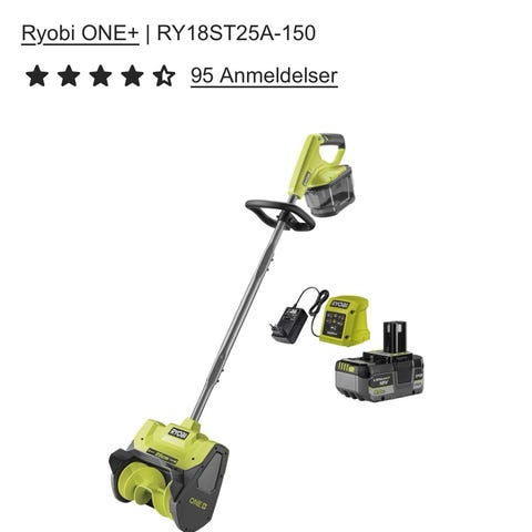 Ryobi One+ elektrisk snøfreser som bruker 18V batteri. Designet for å fjerne snø fra små til mellomstore områder. Utstyrt med et ergonomisk håndtak og justerbar høyde for brukervennlighet. Kompakt og lett for enkel håndtering og oppbevaring. Uten batteri.