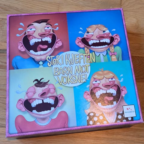 Brettspillet Stor i kjeften barn mot voksen. Alt intakt. Halvparten av munnstykkene er ubrukt, resten er vasket i oppvaskmaskin og er klar til bruk. 🙂