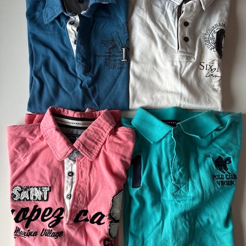 Ingen skader eller unormal slitasje. Litt blasserte etter vask