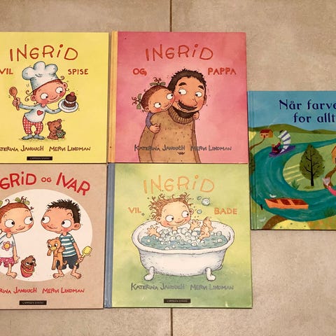 3 stk Ingrid-bøker selges samlet eller hver for seg. «Plaster» og «Morgen til kveld» er veldig fine og ingen slitasje. «Bassilusken» er litt mer lest, og har litt slitasje i permen. Se bilder.