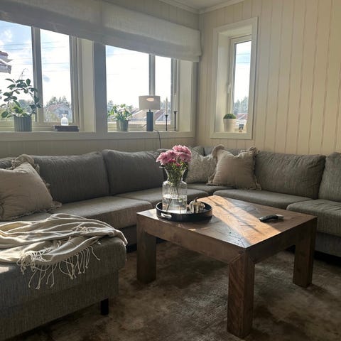 Sofaen er kjøpt ny fra Møbelringen for litt over 3 år siden. Fin i stoffet og god å sitte i.