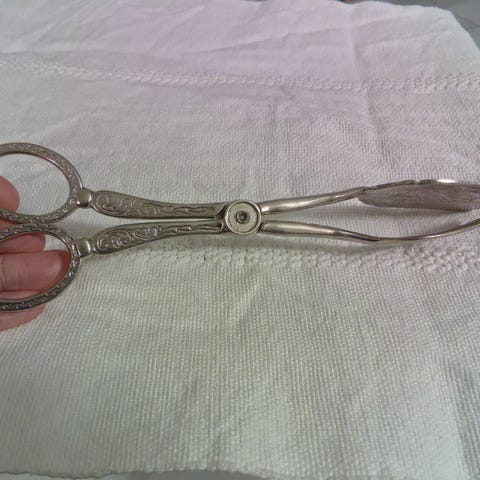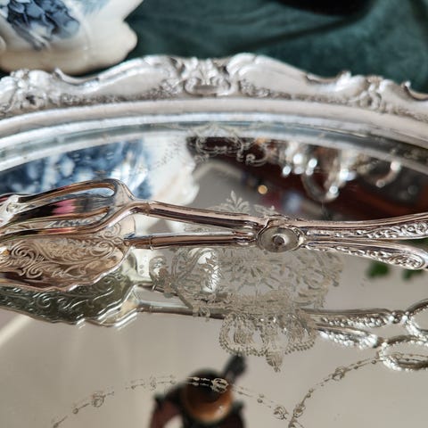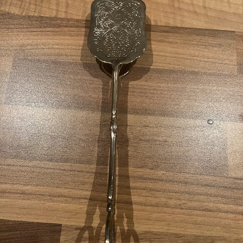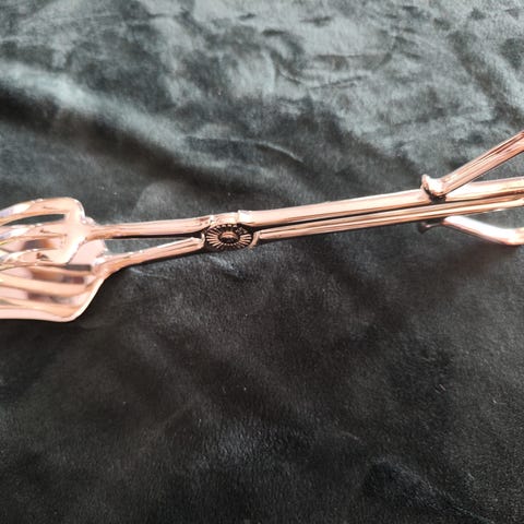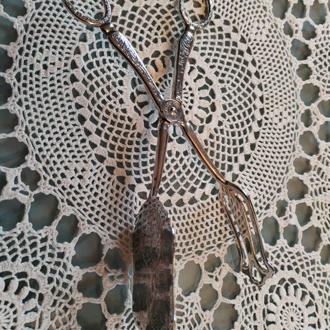 Selger smørbrødklype i sølvplett. Ca 23,5 cm. Ingen bruksmerker.