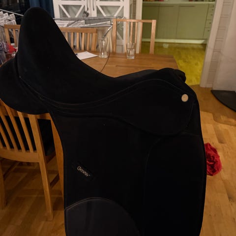 Salen har vært brukt på fjordhest og ligger stabilt på runde hester. Gode lårstøtter som gir en fin sits. Jevnlig fulgt opp av saltilpasser. Normale bruksmerker og stopp, sømmer og konstruksjon er i god stand. Originalt saltrekk medfølger.