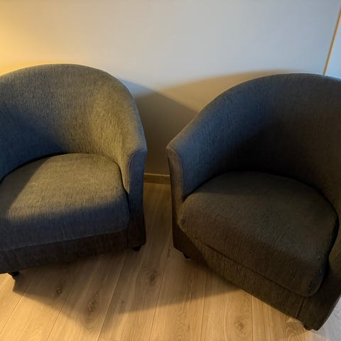 To komfortable lenestoler som har vært i loftstua. Litt brukt. Selges 300kr pr stk eller to for 500kr