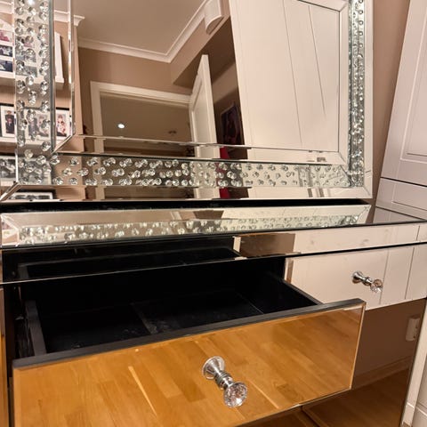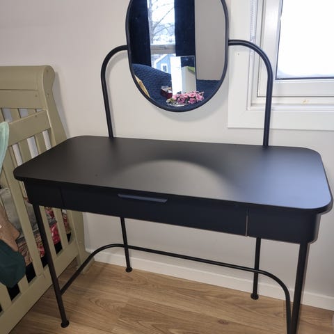 Godt brukt sminkebord. En skuffe front må limes. Men med litt kjærlighet kan dette sminkebordet bli nydelig. Må hentes.