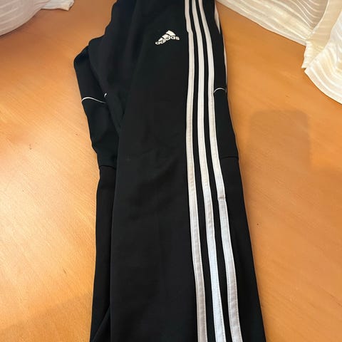 Adidas Tiro fotballbukse for herre i størrelse L. Buksen er designet for fotball og har en tettsittende passform. Den er svart med hvite detaljer og laget i et materiale som egner seg for sport.