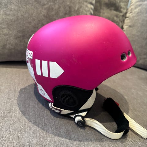 Slalomhjelm til barn har blitt for liten, derfor til salgs. 300kr, kan hentes på Risvollan i Trondheim eller sendes med fiks ferdig.