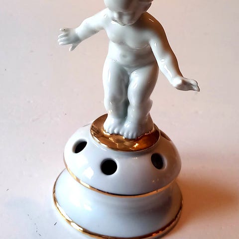 Flott stor porselensvase med kanten håndmalt med 24K gull.