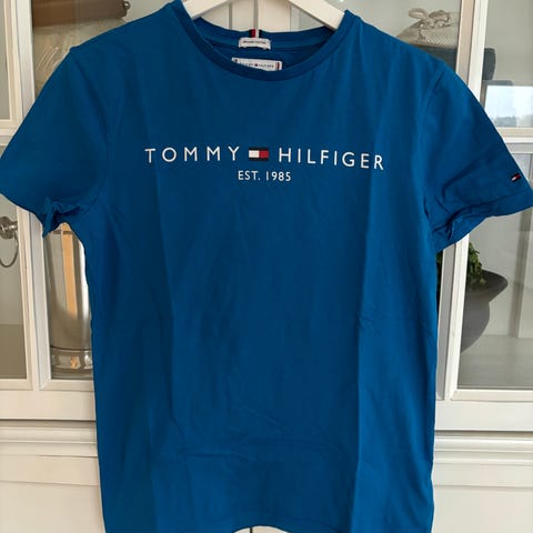 Rød t skjorte fra Tommy Hilfiger i strl 164. Pent brukt.