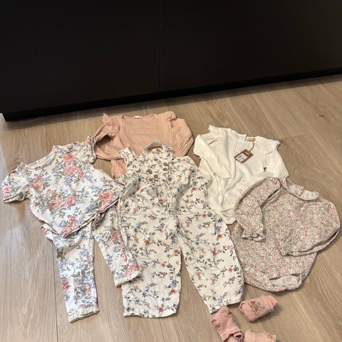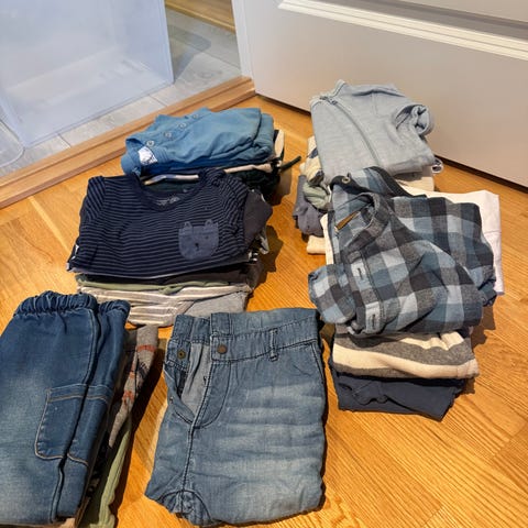 Noen av klærne er godt brukt og noe blasse i fargen og/eller litt flekkete og har i det siste fungert som skiftetøy i barnehagen, men klærne har mye bruk igjen!
