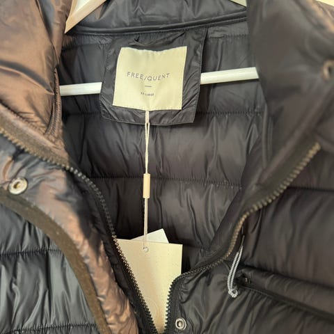Kjøpt på Shein i november 2025. Aldri blitt brukt, kun prøvd på. Lappen er tatt av da jeg var superfornøyd med den, men fant så ut at den ble for stor etter en tid og noen kg av. Nydelig stor avtakbar hette, herlig tykk "pels", solide glidelåser, justerings muligheter på midjebeltet, det kan også tas av. Kvaliteten er myk og fluffy, varm og god. Modellen er Curve, kostet rett over 900 + frakt og selger den videre for 700.