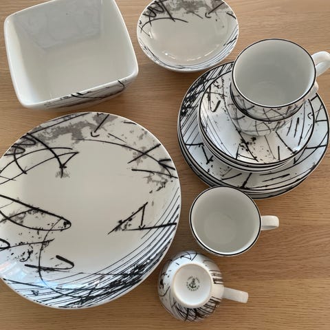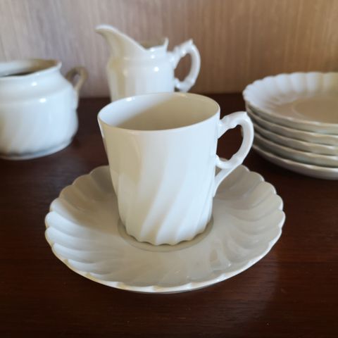 Porsgrunn Porselen partitur servise sett med kopper og tallerkener