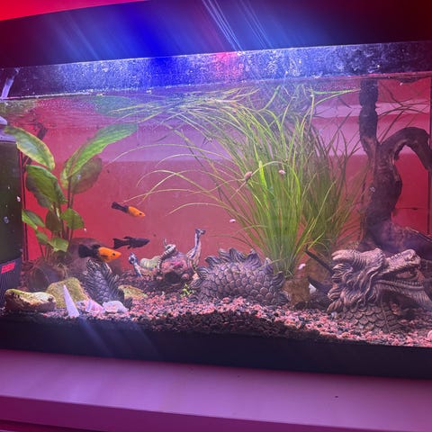 Lite akvarium selges med pumpe og sand. Ca 30 cm høyt og 25 cm bredt. Må hentes.