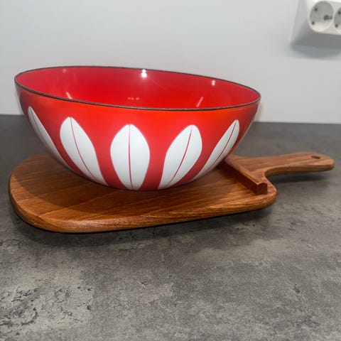 Et veldig lite skår på håndtaket, ellers i fin vintage stand.