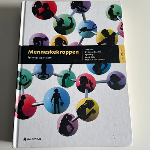Selger innbundet bok Menneskekroppen fysiologi og anatomi. Boka ble kjøpt i august og har ingen skader eller merker.
