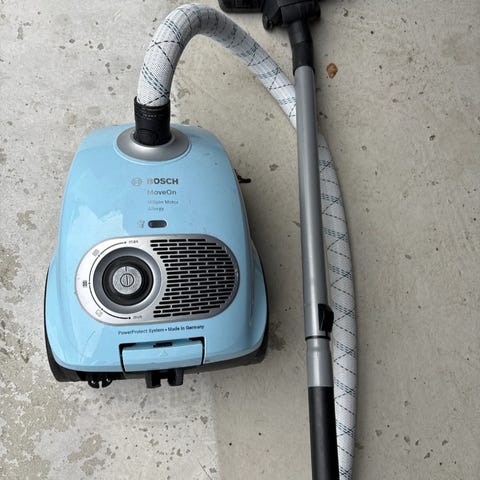 Bosch MoveOn støvsuger i blå farge. Liten og hendig støvsuger som passer til generell rengjøring i hjemmet.