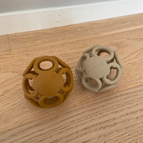 Babyball fra Liewood med åpning så man kan putte f.eks. en klut eller en leke inni. Lite brukt av et barn. Gammelrosa farge i silikon