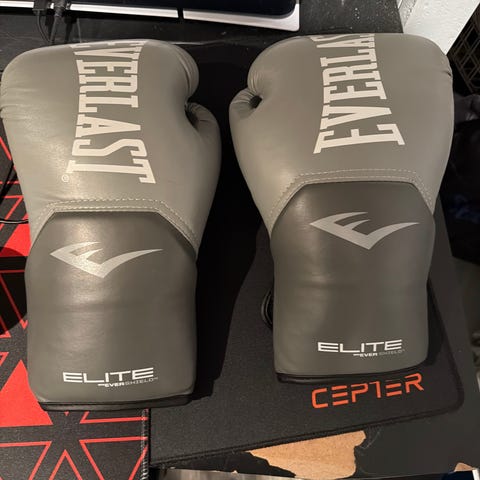 Firepower bokse pads i rødt og hvitt fargevalg. Brukes som treningsutstyr for å forbedre slagteknikk og reaksjonstid i kampsport og boksing.