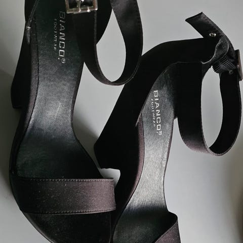 Bianco Hæler i størrelse 38 med svart farge. Skoene har en klassisk hæl og spiss tupp.