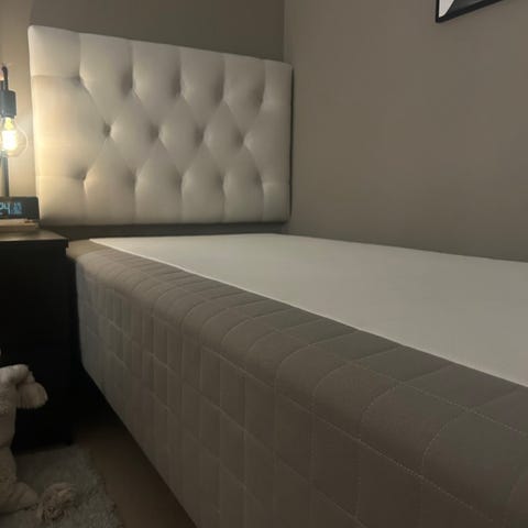 Seng fra Ikea (modell Brimnes) med fire skuffer, mangler håndtak på to skuffer. Rammen er stødig og ingen skader av betydning. Rammemadrass følger med om ønskelig, denne er godt brukt. Overmadrass følger ikke med. Hentes på Grønberg demontert. Kan være behjelpelig med å bære ut☺️ Ligger ute på flere steder.